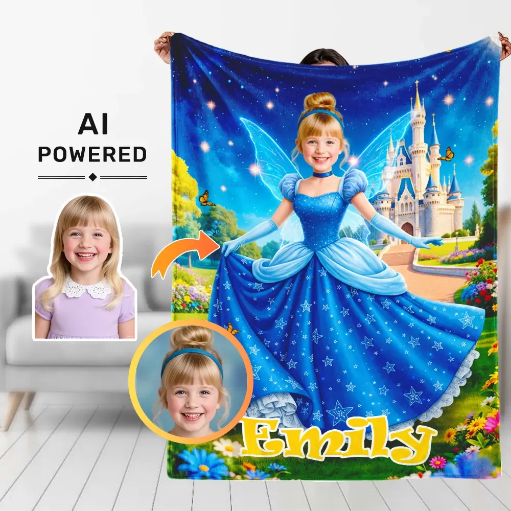 Benutzerdefinierte Decke Ai Powered Prinzessin Blauen Tanzkleid mit Großen Schloss Sternenlicht Geschenk für Mädchen