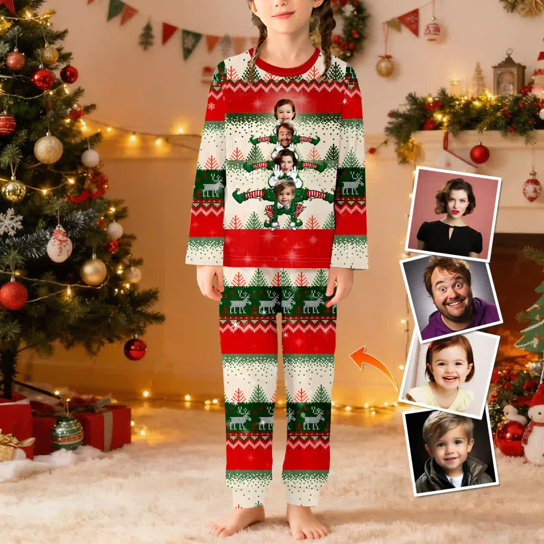 Benutzerdefinierte Weihnachten Kind Rundhalsausschnitt Langarm-Pyjamas Rot Weiß Nussknacker Soldat Muster Weihnachtsgeschenk für Mädchen