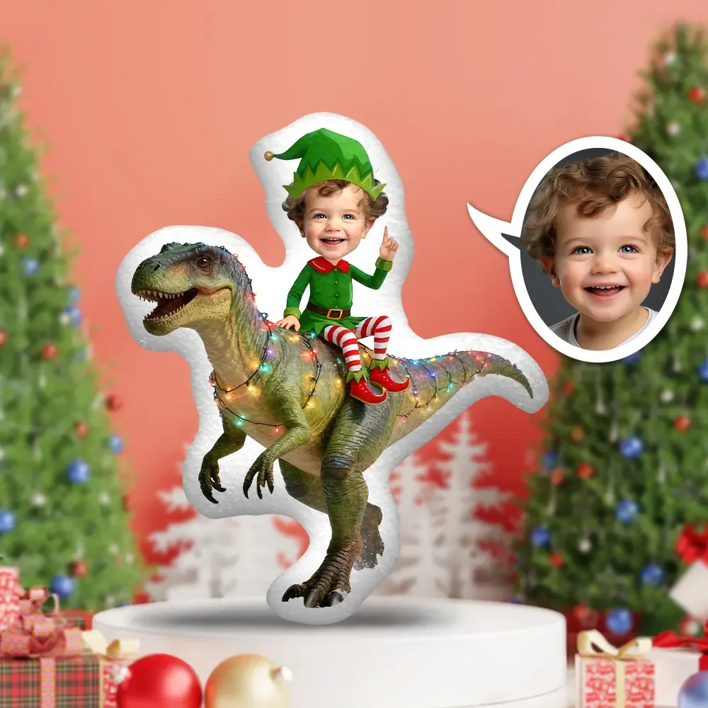 Benutzerdefinierte Minime Kissen Grün Weihnachten Elf Reitet Einen Dinosaurier Geschenk für Jungen Weihnachtskissen Kissen Weihnachten