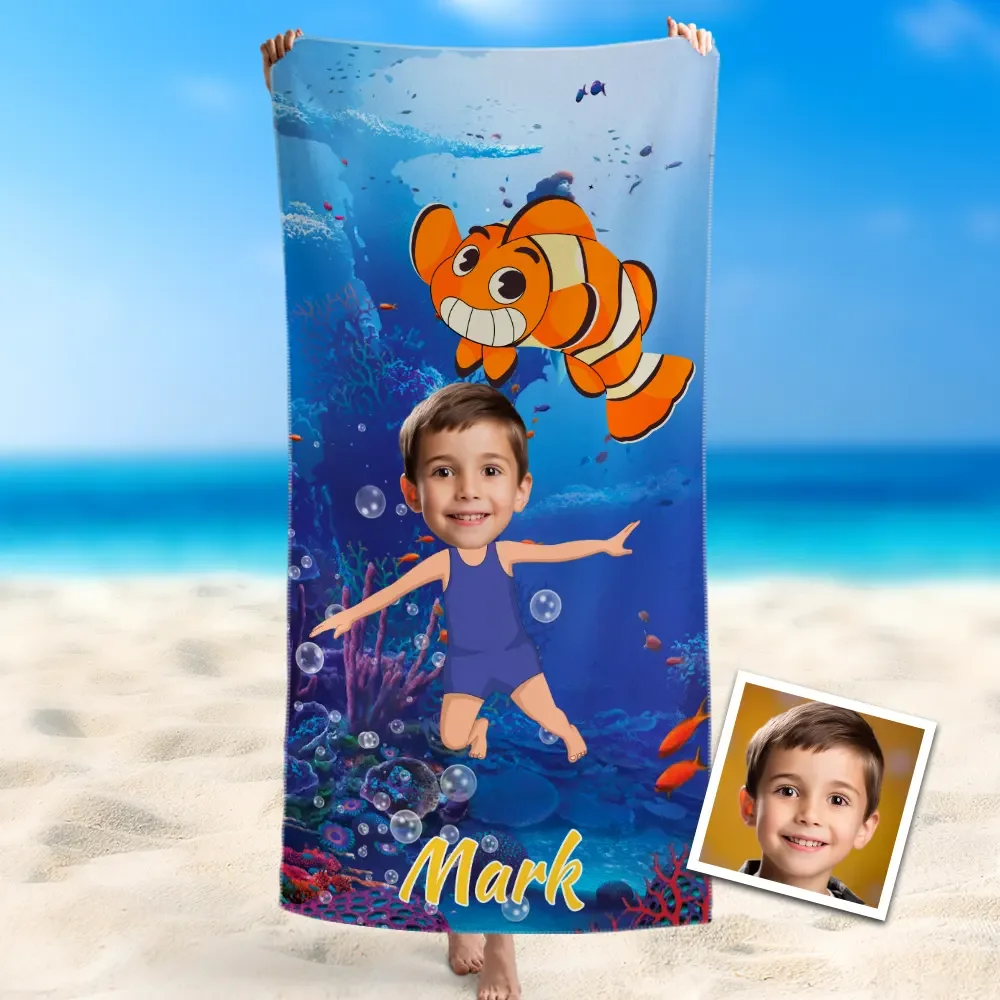 Personalisiertes Handtuch Mit Gesicht, Schnell Trocknendes Badetuch, Finding Anemonefish Schwimmen Handtuch