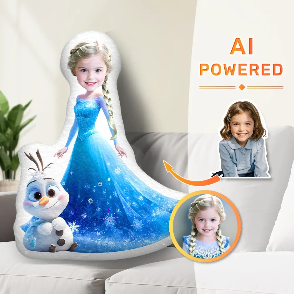 Personalisiertes Kissen Personalisiertes KI-gesteuertes 3D Eiskönigin Prinzessin Gesicht Körper Kissen mit Ihrem Foto