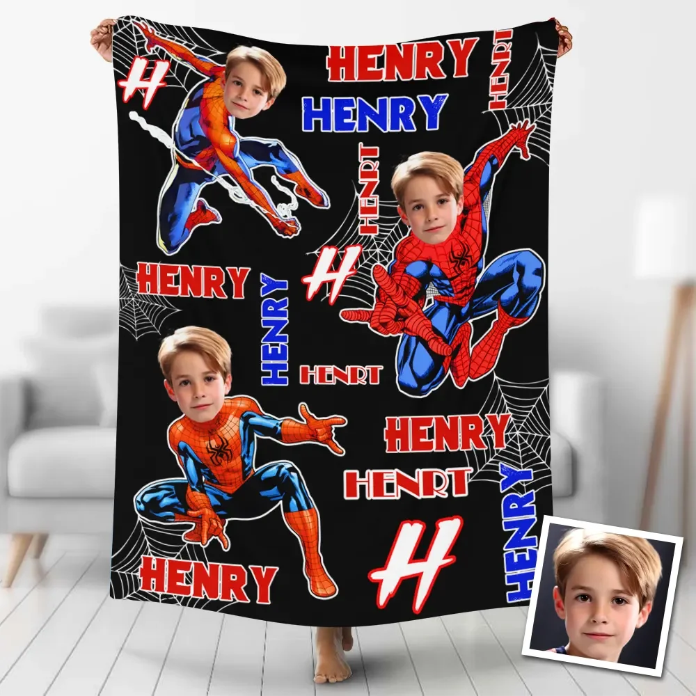 Individuelle Fotodecke KI-gestützt 3D Spiderboy Personalisierte Spiderboy mit Ihrem Foto