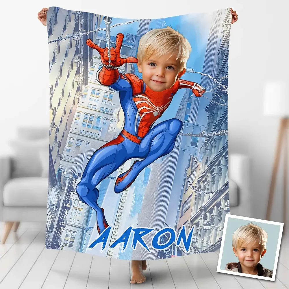 Individuelle Fotodecke KI-gestützt 3D Spiderboy Personalisierte Spiderboy mit Ihrem Foto